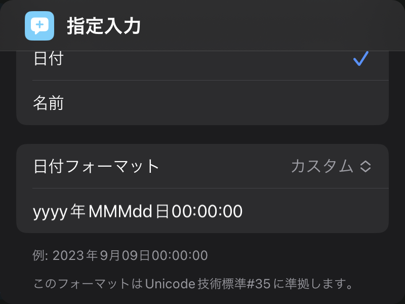指定入力では日付しか入力していないので、0:00:00と時刻は固定しておく。