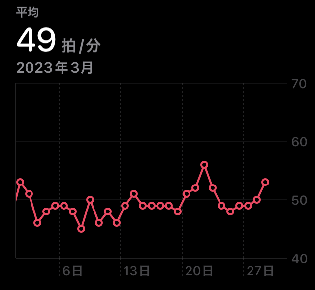 早速自分の安静時心拍数を確認してみる。